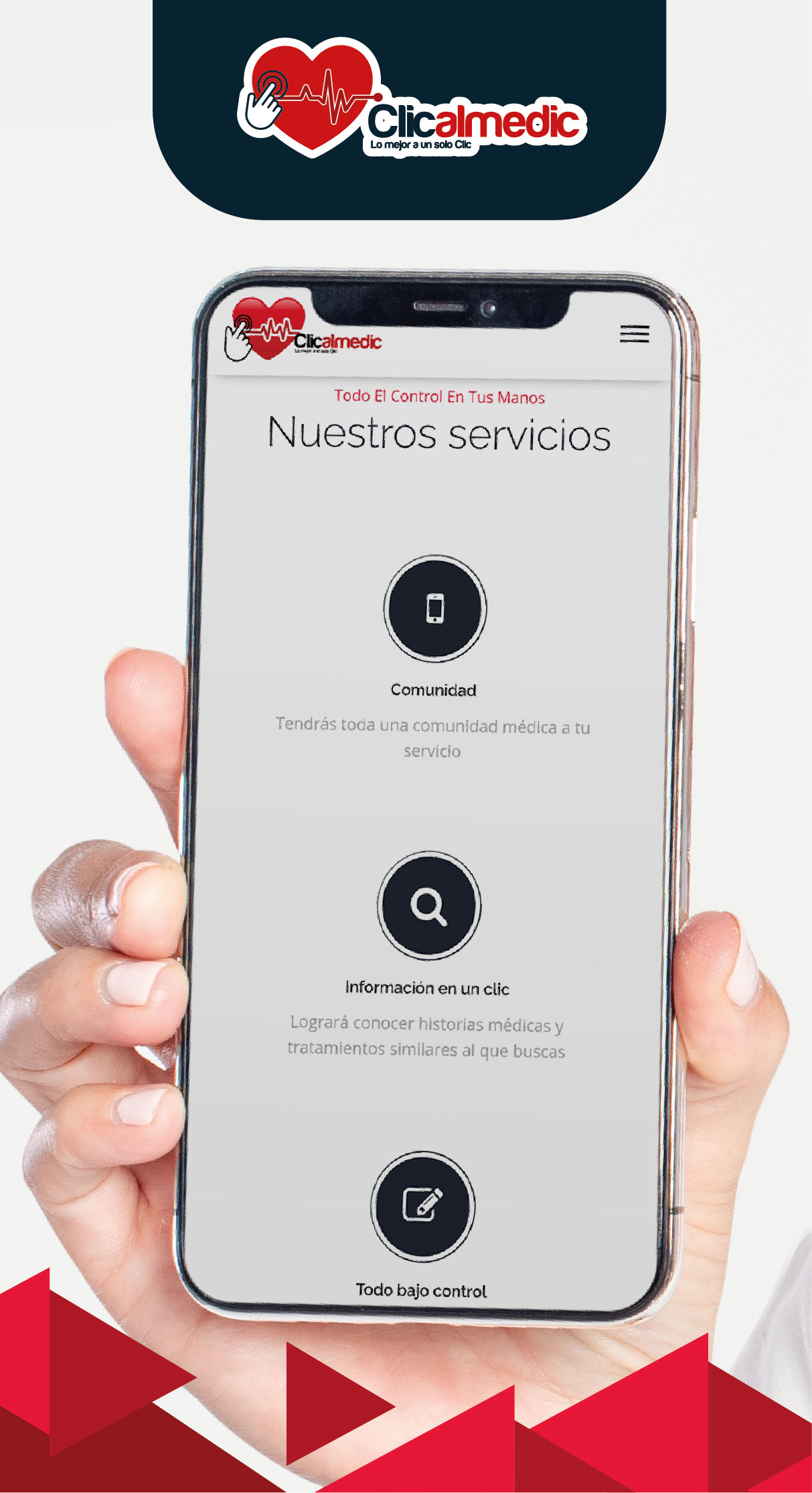 Diseñamos una herramienta tecnológica llamada CLICALMEDIC para facilitar y mejorar nuestra vida diaria, brindando información útil en temas médicos y conectando al sector salud con las necesidades de nuestros usuarios.